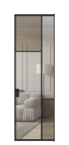 АЛПЛ041.10 Алюминий Черный Декоративное стекло с сеткой "Mesh silver", триплекс, 6 мм + Прозрачное бронзовое стекло, триплекс