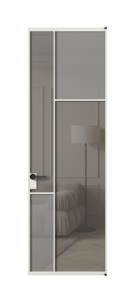 Магнитный горизонтальный замок — стильное и необычное решение для алюминиевых дверей, которое отвечает последним трендам дизайна интерьеров. Замок с сантехнической заверткой и дверной ручкой Кватро будут сразу установлены на полотно.