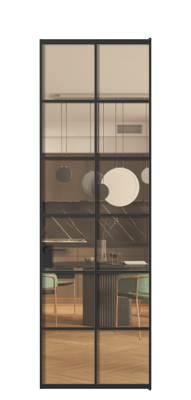 Минималистичный профиль повторяет форму профиля алюминиевых раздвижных перегородок Formato, что позволяет легко сочетать оба решения в одном пространстве.