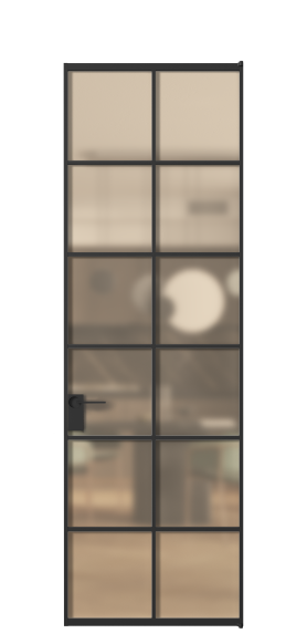 Каждая дверь изготавливается индивидуально по точным замерам*. Возможная ширина двери 600–950 мм с шагом 50 мм. Высота двери — от 2000–3000 мм с шагом 10 мм. Доступно решение «дверь в потолок».
