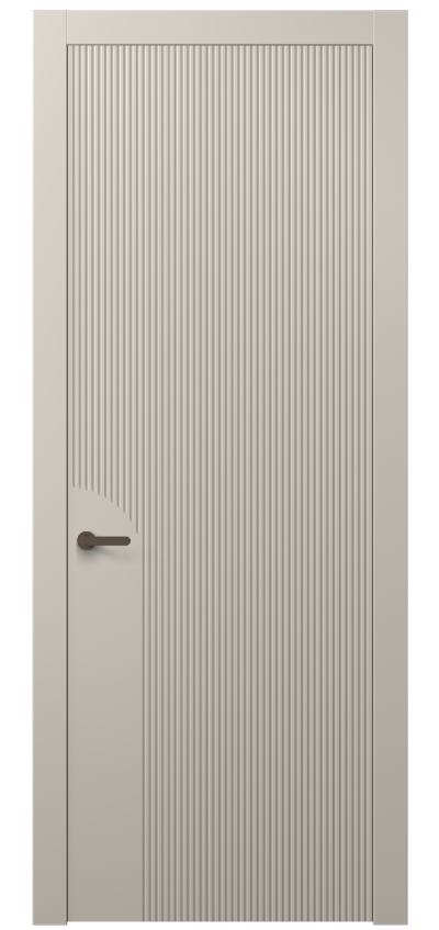 Dune — коллекция дверей украшена частой прямой фрезеровкой, которая напоминает волны дюн в пустыне. Созданная на поверхности полотна текстура привлекает взгляд и добавляет глубину пространству. Двери Dune — это сочетание современного дизайна и вдохновения живописными природными ландшафтами.